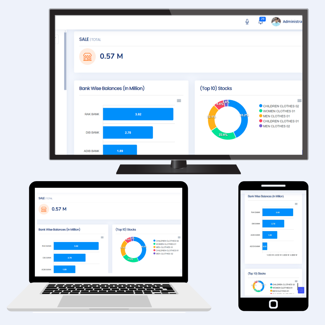 Our ERP solution features a modern and visually appealing interface, efficiency, and accessibility. With customizable dashboards, and role-based access controls, users can easily access the information and tools.